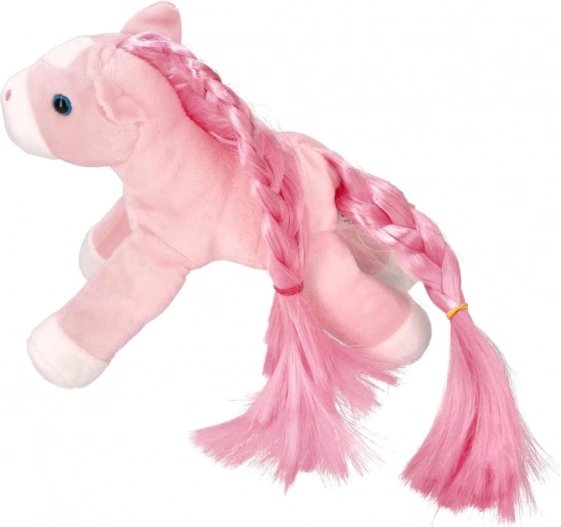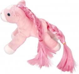 Ten pluszowy kucyk ma długą i bogato zaplecioną grzywę oraz ogon, co czyni go idealnym przytulnym towarzyszem dla każdego dziecka.