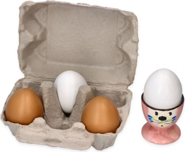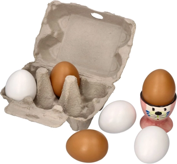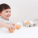 Karton, w którym są jajka, wspiera naukę o organizacji i porządkowaniu, co jest dla dzieci zabawnym i edukacyjnym sposobem na naukę o codziennych obowiązkach domowych. Wymiary opakowania 15,5 x 11 x 7 cm sprawiają, że jajka łatwo przechowywać i są idealne do dziecięcej kuchni lub sklepu.