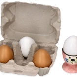 Karton zapewnia bezpieczne przechowywanie jajek i naśladuje prawdziwe opakowanie jajek ze sklepu.
