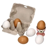 Ten zestaw drewnianych jajek został zaprojektowany, aby dzieci mogły uruchomić swoją wyobraźnię i rozwijać umiejętności manualne podczas zabawy. Jajka są bezpieczne dzięki używanym materiałom, które spełniają europejskie normy bezpieczeństwa CE.