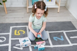 Drewniane kostki można przestawiać, aby tworzyć różne obrazki, co daje dzieciom możliwość rozwijania kreatywności i wyobraźni przestrzennej.