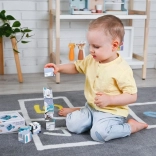 Te kolorowe drewniane kostki umożliwiają dzieciom tworzenie różnych obrazków poprzez łączenie elementów, co jest świetnym sposobem na rozwijanie umiejętności przestrzennych i koordynacji. Układanka jest odpowiednia dla dzieci od 12 miesięcy i zapewnia bezpieczeństwo dzięki deklaracji zgodności CE.