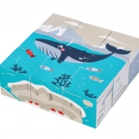 Scenerie z wielorybem i morskim otoczeniem pozwalają dzieciom odkrywać życie w oceanie.