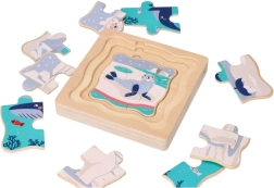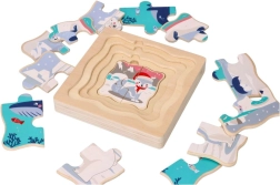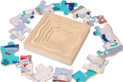 Ta drewniana warstwowa układanka z arktycznym motywem zawiera 15 kolorowych elementów oraz solidną drewnianą podstawę. Została zaprojektowana, aby wspierać rozwój poznawczy i koordynację u dzieci.