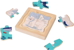Odkryj urok Arktyki z naszą drewnianą układanką, idealną dla dzieci od 12 miesięcy. Ta układanka oferuje następujące cechy: