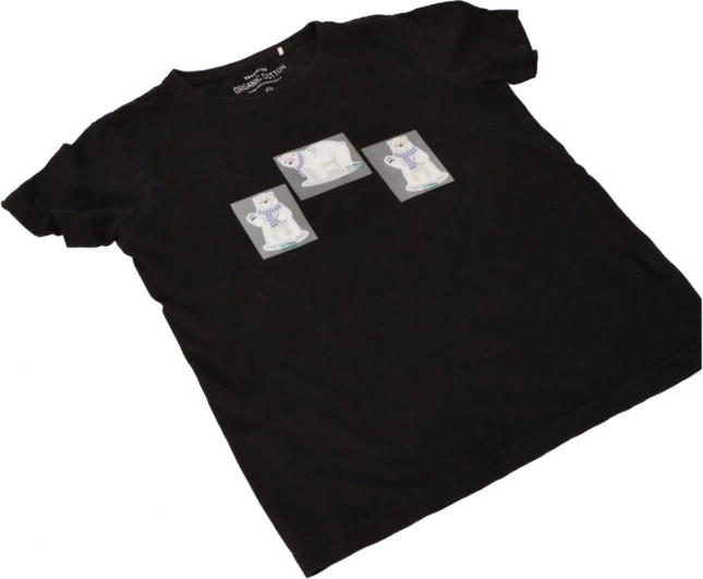 Jak to zrobić: wytnij motyw, umieść w wybranym miejscu, ustaw żelazko na 150–180 °C (bez pary) i dociśnij przez 10–15 s. Po ostygnięciu zdejmij folię transferową. W razie potrzeby krótko powtórz proces.