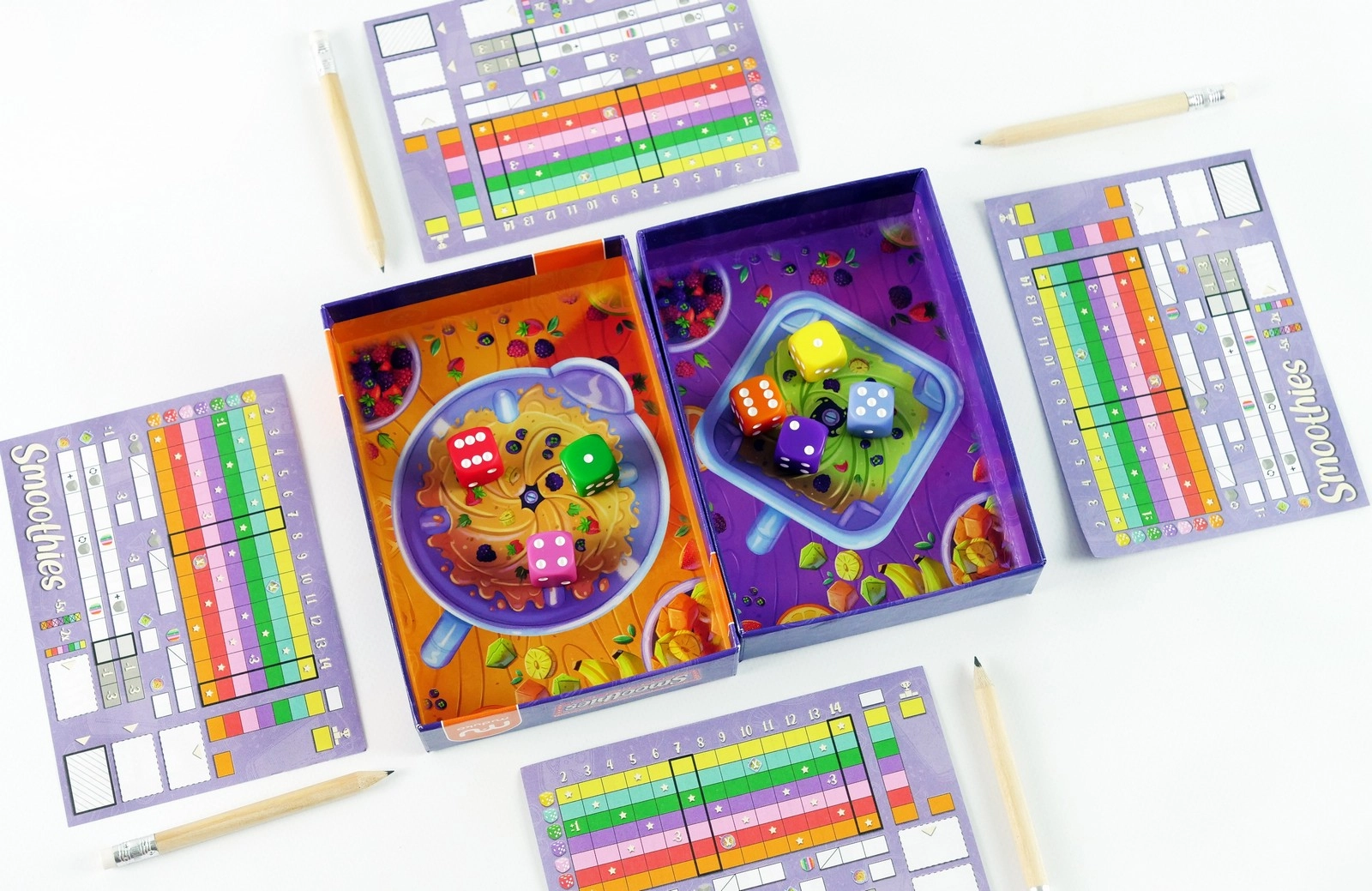 Smoothies to barwna i pomysłowa gra roll-and-write, w której rzucasz kośćmi do dwóch „blenderów” – przegródek pudełka – i wybierasz z nich najlepsze kombinacje na swój arkusz gry. Sprytny dobór kości i planowanie ruchów zapewniają przyjemną dawkę taktyki, a dynamiczne rundy utrzymują rozgrywkę szybką i płynną.