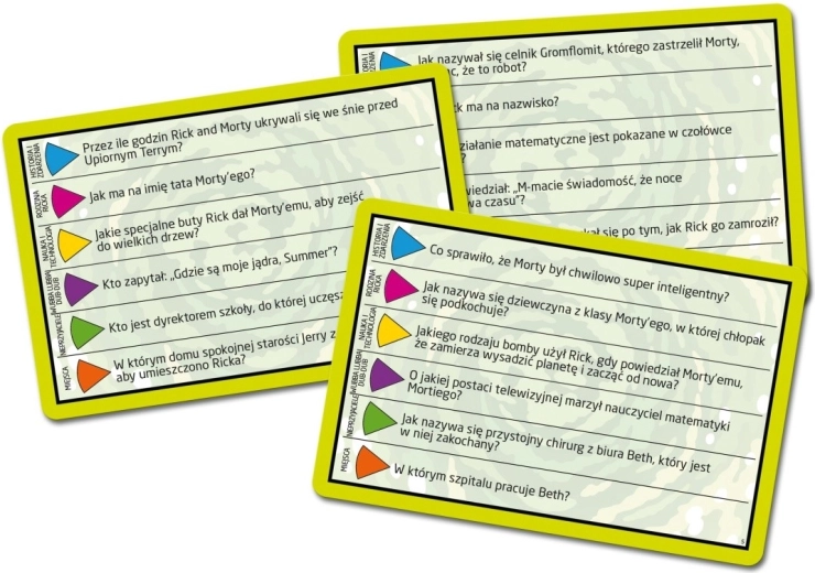 Pytania dotyczą wszystkich waszych ulubionych postaci, od Beth po Pana Meeseeksa. Odpowiadając poprawnie na pytania z sześciu kategorii, jako pierwsi zdobędziecie sześć kart: Historia i wydarzenia, Rick i rodzina, Technologia i nauka, Wrogowie, Miejsca oraz Wubba Lubba Dub-Dub. Chwyćcie broń portalową i przygotujcie się na ostateczne sci‑fi wyzwanie!