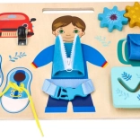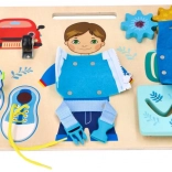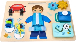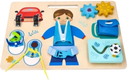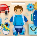 Uczy sznurowania butów, zapinania zamków błyskawicznych i posługiwania się klamrami, co stanowi praktyczne umiejętności.