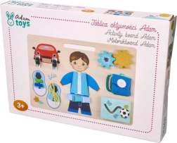 Tablica utrzymana jest w naturalnych odcieniach drewna i stanowi kompletny edukacyjny zestaw rozwijający kluczowe umiejętności poprzez fascynującą zabawę.