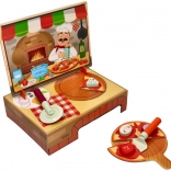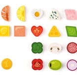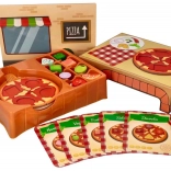 Zawiera różnokolorowe, odczepiane składniki, takie jak pieczarki, papryka i ser, które pozwalają dzieciom tworzyć własne, niepowtarzalne pizze.