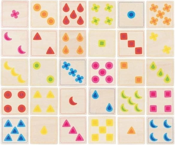 Zabawna gra rodzinna dla dwóch i więcej graczy, która rozwija szybki refleks, koncentrację i myślenie logiczne. Drewniane płytki z kolorami i kształtami oferują trzy sposoby dopasowania – ten sam kolor, ten sam kształt lub ta sama liczba symboli. Proste zasady, szybkie rundy i wysokiej jakości drewniane wykonanie czynią z niej idealną grę dla dzieci i dorosłych.