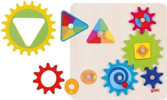 Ta drewniana gra logiczna marki GOKI rozwija dziecięcą wyobraźnię i cierpliwość. Dzieci układają kolorowe koła zębate na podstawie i sprawdzają, czy po ustawieniu niebieskiego koła wszystkie kółka poprawnie się poruszą – i w którym kierunku. Kreatywna i radosna nauka prowadzi do zrozumienia podstaw mechaniki oraz związku przyczynowo-skutkowego.