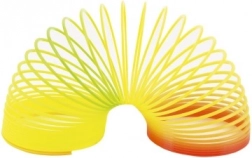 Zabawka dla małych i dużych – tęczowa plastikowa sprężyna o średnicy 7,5 cm. Świetnie schodzi po schodach, płynnie przelewa się z dłoni do dłoni i oferuje nieskończoną dawkę prostej zabawy dla dzieci od 3 lat.