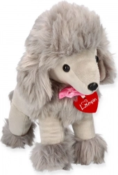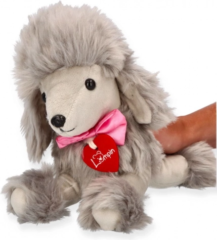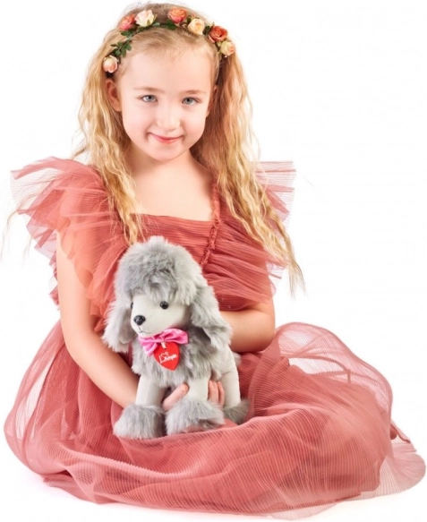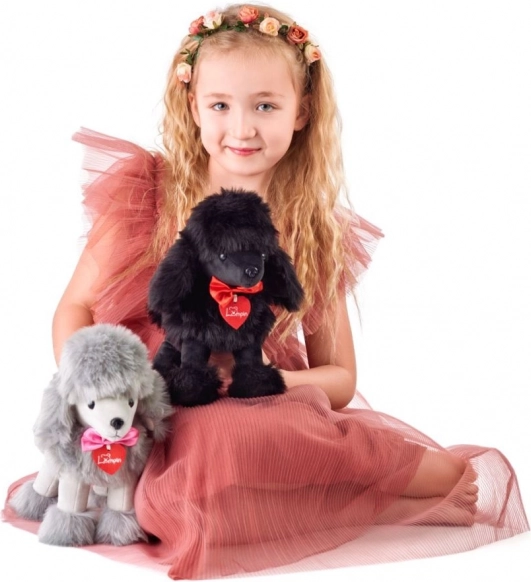 Pudel Lily ma mięciutki plusz, puszyste elementy oraz haftowane oczka i nosek – bezpieczne i przyjemne dla najmłodszych.
