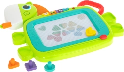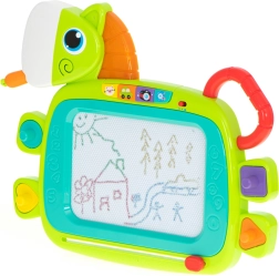 Magnetyczna tablica HOLA to świetny wybór dla rozwoju kreatywności i motoryki małej. Dzięki czterem kolorowym strefom powstają obrazki w barwach, które podobają się dzieciom. Jednym ruchem suwaka wyczyścisz powierzchnię i będzie gotowa na kolejne pomysły. Kształt konika z świecącą grzywą i wesołymi dźwiękami zachęca dzieci do zabawy.