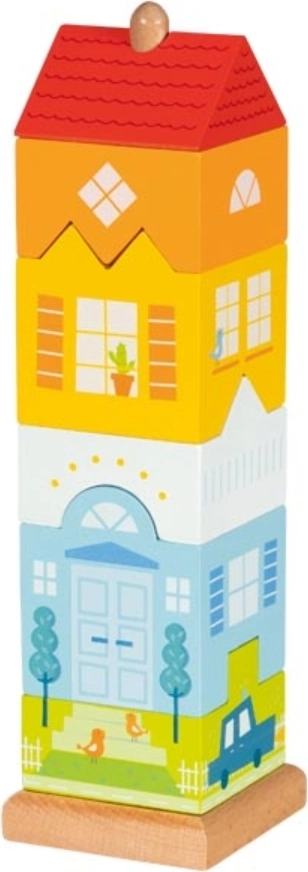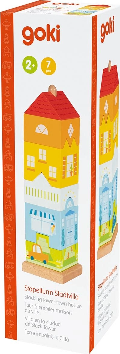 Oto typowy miejski dom. Zestaw składa się z kolorowych klocków, z których każdy jest inny i każdy łączy się z poprzednim w nieco inny sposób. Ten miejski dom składa się z 6 klocków oraz podstawy. Kołek jest przymocowany na sznurku. Każdy kolejny klocek to inne piętro i inny element. Wymiary: 7 x 7 x 26 cm Wiek: 2+ Nr ref.: 58358 Deklaracja zgodności CE