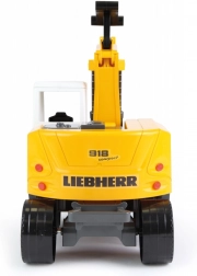 Realistyczna koparka LIEBHERR A 918 Litronic zapewnia dzieciom autentyczne wrażenia z placu budowy. Dzięki obrotowej górnej części o 360° z blokadą, długiemu wysuwanemu ramieniu i funkcjonalnemu lemieszowi dzieci mogą zanurzyć się w świat kopania, załadunku i przenoszenia materiału. Solidne wykonanie z metalowymi osiami kół gwarantuje stabilność i odporność nawet podczas intensywnej zabawy.