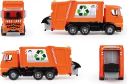Elementy funkcjonalne zapewniają zabawną i autentyczną rozgrywkę: pojemniki można podstawić do załadunku, skrzynia się wywraca, a zabezpieczenie chroni przed przypadkowym wysypaniem ładunku. W opakowaniu znajdziesz 1× mały i 1× duży pojemnik, dzięki czemu dziecko może sortować i przewozić „odpady” jak prawdziwi śmieciarze.