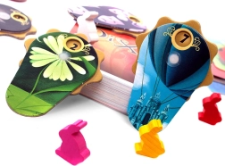 Edycja podstawowa zawiera planszę z torem punktacji, drewniane króliczki oraz żetony do głosowania – klarowne zasady, szybkie tury, bez zbędnych przestojów.