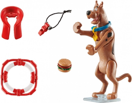 Scooby w ratowniczym wyposażeniu – z kołem ratunkowym i kamizelką – umożliwia realistyczne scenki i łatwe pozowanie dzięki ruchomym częściom.