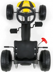 Inne cechy to stylowy sportowy wygląd, trójramienny kierownica i realistyczny design. Jest wykonany z bezpiecznych materiałów i umożliwia jazdę do przodu i do tyłu za pomocą pedałów, co gwarantuje dobrą zabawę i aktywną grę.