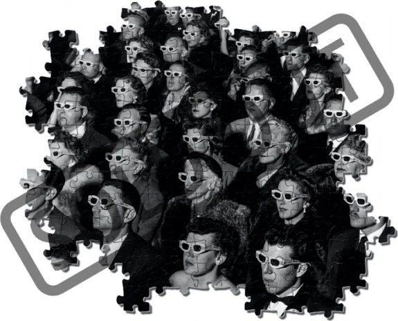 Klasyczna fotografia publiczności w okularach 3D doda wnętrzu stylu i wyrazistego kontrastu. Po ułożeniu obraz jest gotowy do oprawienia.