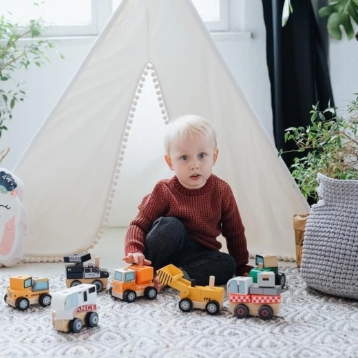 Zabawka karetka z serii Drewniane zabawki wzmacnia odruch chwytania i uczy precyzji. Zabawka stymuluje wyobraźnię oraz rozwija koordynację wzrokowo‑ruchową. Ma ruchome elementy. Wszystkie materiały użyte do produkcji zabawki są certyfikowane i pomalowane nietoksycznymi farbami. Zabawka jest odpowiednia dla dzieci od 12 miesięcy.