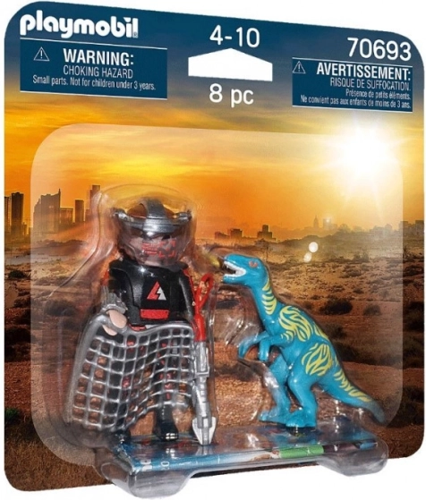 Przeżyj pełną akcji przygodę z podwójnym zestawem PLAYMOBIL, w którym sprytny przestępca próbuje schwytać welociraptora za pomocą sieci. Dwie figurki z akcesoriami zapewniają podwójną dawkę zabawy i wspierają wyobraźnię oraz kreatywność dzieci od 4. roku życia.