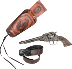 METALOWY KOWBOJSKI REWOLWER GONHER 150/0 Z KASETĄMetalowy kowbojski rewolwer na 8 nabojów z kaburą w zestawie.