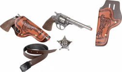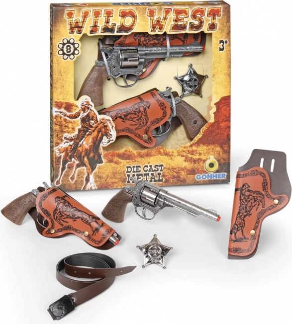Ten wysokiej jakości zestaw kowbojski GONHER oferuje realistyczny wygląd i efekty dźwiękowe dzięki mechanizmowi na ośmionabojowe paski (bębenkowe). Metalowe wykonanie zapewnia większą trwałość i długą żywotność, a dołączona kabura i odznaka dopełniają autentyczny wygląd małego szeryfa.