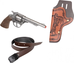 W zestawie znajduje się stylowa kabura, dzięki której możesz bezpiecznie nosić rewolwer przy pasie i mieć go zawsze pod ręką. Metalowa konstrukcja zapewnia trwałość i długą żywotność, a ergonomiczny uchwyt wygodnie leży nawet w mniejszych dłoniach.
