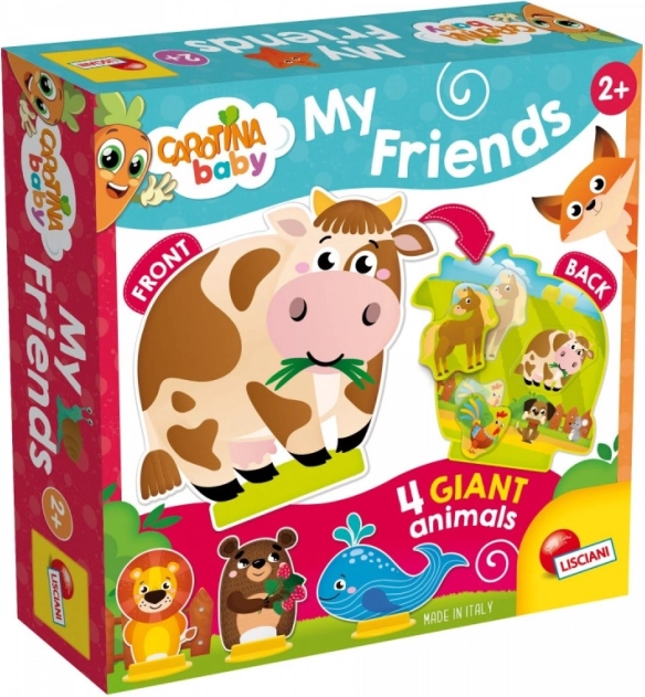 Moi zwierzęcy przyjaciele to nowy produkt z linii Carotina Baby. Zestaw zawiera 4 zwierzęta, które są jednocześnie typowymi przedstawicielami środowisk, w których żyją – wieloryba, lwa, niedźwiedzia i krowę. Do każdego z nich należy przyporządkować małe zwierzątka odpowiadające danemu środowisku. Każde duże zwierzę ma pasujące wypustki, aby dziecko mogło samodzielnie dokonać klasyfikacji. Gra pozwala poznawać zwierzęta i ćwiczyć chwyt. Elementy wykonane są z wytrzymałej tektury, która bez problemu wytrzyma zabawę z dziećmi.