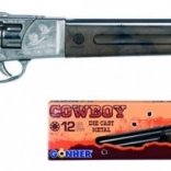 Ta kowbojska metalowa strzelba na 12 nabojów z bębnem jest idealna do gier tematycznych, kostiumów oraz ekspozycji kolekcjonerskich. Solidna metalowa konstrukcja i staranne wykończenie marki Gonher nadają zabawce autentyczny wygląd i długą żywotność.