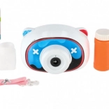 Pozwól swoim dzieciom odkrywać świat baniek mydlanych z Aparatem fotograficznym do baniek mydlanych, który jest zdolny do tworzenia nieskończonej ilości bąbelków. Jego design przypominający aparat fotograficzny oferuje nie tylko wizualną zabawę, ale także efekty dźwiękowe imitujące robienie zdjęć.