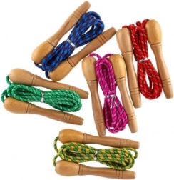 Przedstawiamy wysokiej jakości skakankę, która doskonale nadaje się zarówno na zewnątrz, jak i do wnętrza. Drewniane rączki zapewniają komfortowy chwyt, a solidna tekstylna lina jest wytrzymała i elastyczna, pozwalając na długotrwałą zabawę i ćwiczenia.