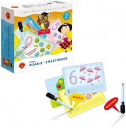 Na odwrocie znajdują się proste i zabawne quizy do ćwiczenia liczenia oraz myślenia logicznego. Zestaw rozwija koncentrację, koordynację ręka–oko i wspiera prawidłowy chwyt pisarski – idealna pomoc w przygotowaniu do szkoły.