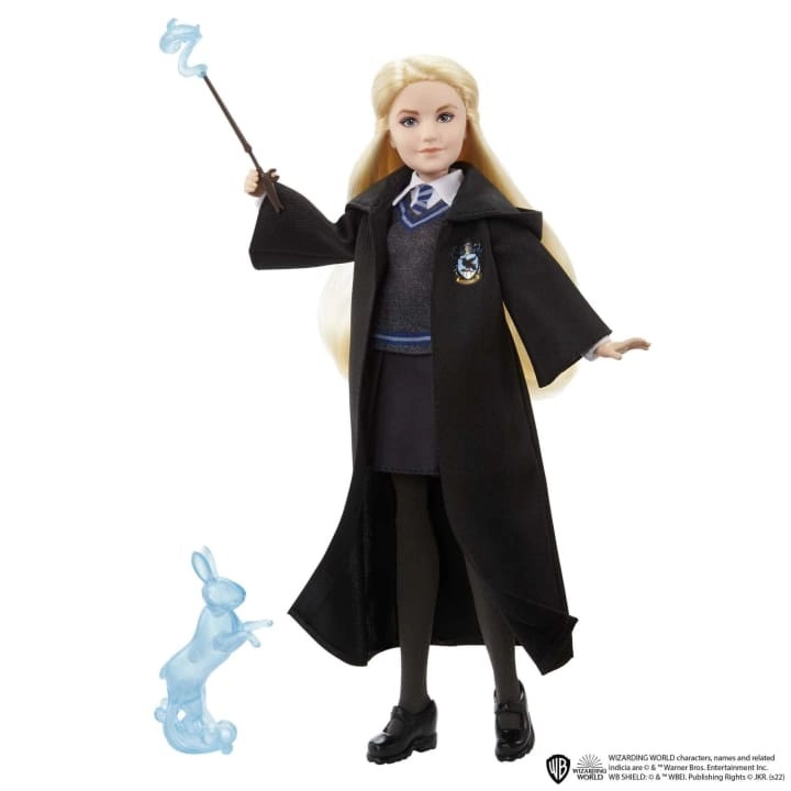 Przeżyj magiczne chwile z Hogwartu z lalką Luny Lovegood inspirowaną filmowym pierwowzorem. Luna ma czarny habit z herbem Ravenclawu, szkolny mundurek oraz szczegółową różdżkę z niebieskim efektem zaklęcia. Przezroczysta figurka Patronusa w kształcie królika doda Twoim opowieściom prawdziwego czaru.