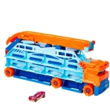 Wyjątkowy transporter Hot Wheels City, który w mgnieniu oka zmienia się w tor z epickim zjazdem o wysokości 60 cm. Pomieści ponad 20 samochodzików w skali 1:64, w zestawie znajduje się 1 samochodzik, a zestaw jest kompatybilny z Hot Wheels City dla jeszcze większej zabawy.