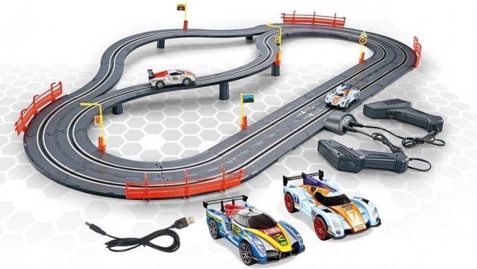 Ten wysokiej jakości autodrom zapewnia rozrywkę dla całej rodziny. Dzięki długości toru 300 cm i dynamicznemu układowi z mostem, czekają Was emocjonujące pojedynki we dwoje. Proste zasilanie przez USB umożliwia podłączenie toru do zwykłego adaptera USB, powerbanku lub komputera (źródło zasilania nie jest częścią opakowania).