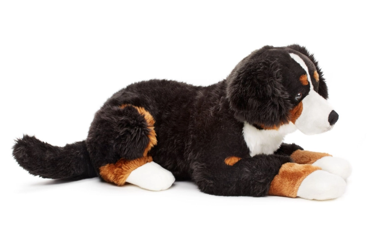 Ten miękki pluszak inspirowany rasą berneński pies pasterski zachwyca autentycznym trójkolorowym umaszczeniem i uroczym wyrazem. Dzięki imponującej długości ok. 65 cm (bez ogona) jest idealny do przytulania, jako dekoracja pokoju oraz towarzysz w podróży.