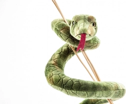 Ten zielony pluszowy wąż przynosi dzieciom delikatne przytulenie i mnóstwo fantazji. Jest przyjemnie miękki, bezpieczny dla niemowląt i dzięki swoim wymiarom wygodnie leży w dłoni. Realistyczne detale, takie jak czerwony rozdwojony języczek i subtelna tekstura „łusek”, czynią z zabawki ulubionego towarzysza do łóżeczka i wózka.