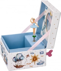 Pozytywka jest ozdobiona motywami latarni morskich, balonów i gwiazd o romantycznym charakterze, które nadają każdemu pokojowi baśniowej atmosfery.