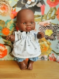 Zestaw dla lalek obejmuje stylowe ubranko z motywem wąsów, idealne dla lalki o wysokości 21 cm. Ten zestaw to doskonałe uzupełnienie dla każdej małej miłośniczki lalek.