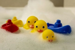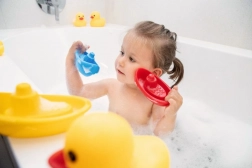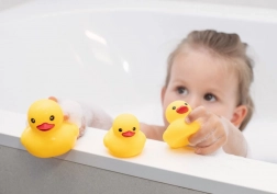 • Pływająca zabawa – kaczuszki i łódeczki stabilnie pływają i zachęcają do zabawy z bąbelkami.