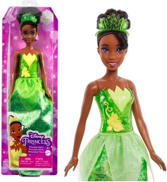 Odkryj magię baśni z lalką DISNEY PRINCESS Tiana inspirowaną filmem Księżniczka i żaba. Ma błyszczący strój, łatwo zdejmowane akcesoria (buciki i tiara) oraz włosy odpowiednie do czesania – idealna do kreatywnej zabawy i opowiadania ulubionych historii. Lalka sama nie stoi. Kolory i detale mogą się różnić.