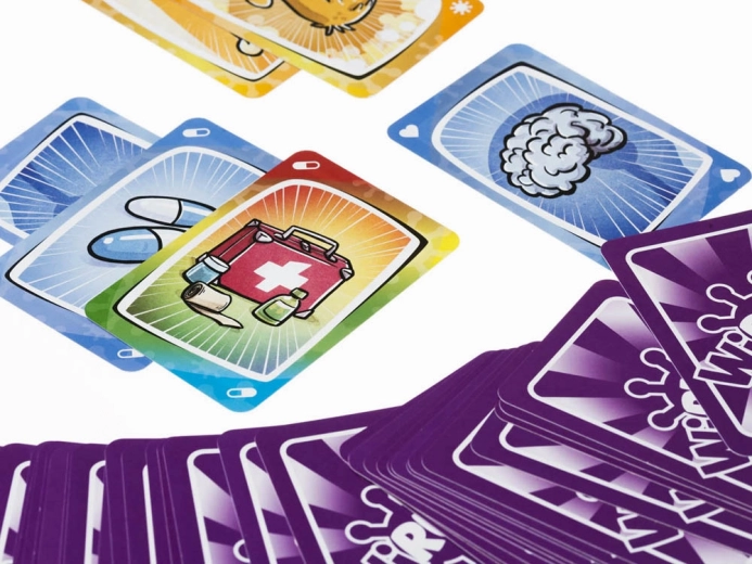 Szybka i dynamiczna gra karciana VIRUS! od Muduko zapewnia szaloną zabawę dla całej rodziny i paczki znajomych. Celem jest jako pierwszy ułożyć cztery zdrowe organy i obronić je przed atakami przeciwników. Ciesz się prostymi zasadami, krótkimi rozgrywkami i mnóstwem negatywnej interakcji – śmiech i chęć na „jeszcze jedną” partię gwarantowane!