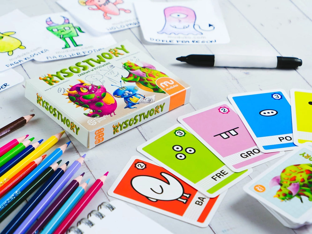 Odkryj Rysostwory – kreatywną karcianą grę rysunkową dla dzieci od 4 lat. Oferuje 9 wariantów rozgrywki, rozwija motorykę małą, umiejętności przedczytelnicze i przedszkolne pisania oraz świetnie sprawdza się jako narzędzie do pracy z emocjami. Gra jest polecana przez psychologów, a dzięki dużej liczbie kart świetnie bawi także większe grupy do 10 graczy.