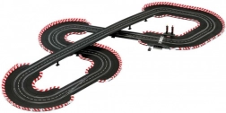 Modułowa pętla w kształcie ósemki z podwójnym mostem, odcinkami do wyprzedzania i szerokimi zakrętami 1/60° dla płynnych pojedynków i driftu.