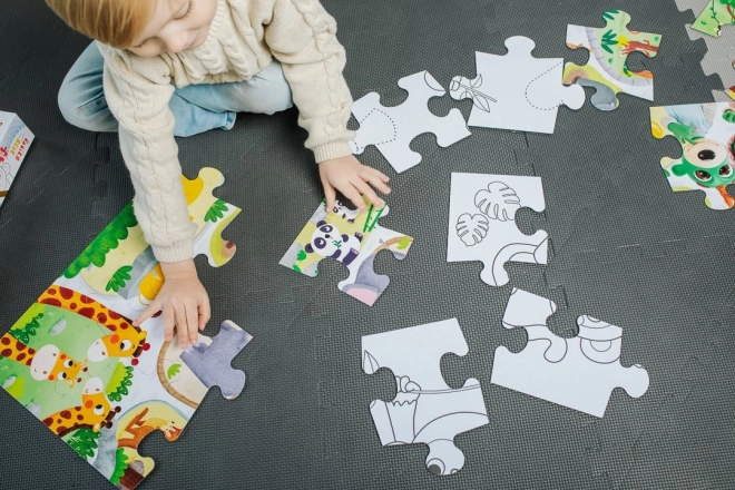 Na odwrocie układanki dzieci mogą cieszyć się podwójną zabawą – kolorowanką i prostą grą z elementami kolorowania. Te aktywności wspierają rozpoznawanie kształtów i kolorów, co jest ważne dla rozwoju młodego mózgu dziecka.